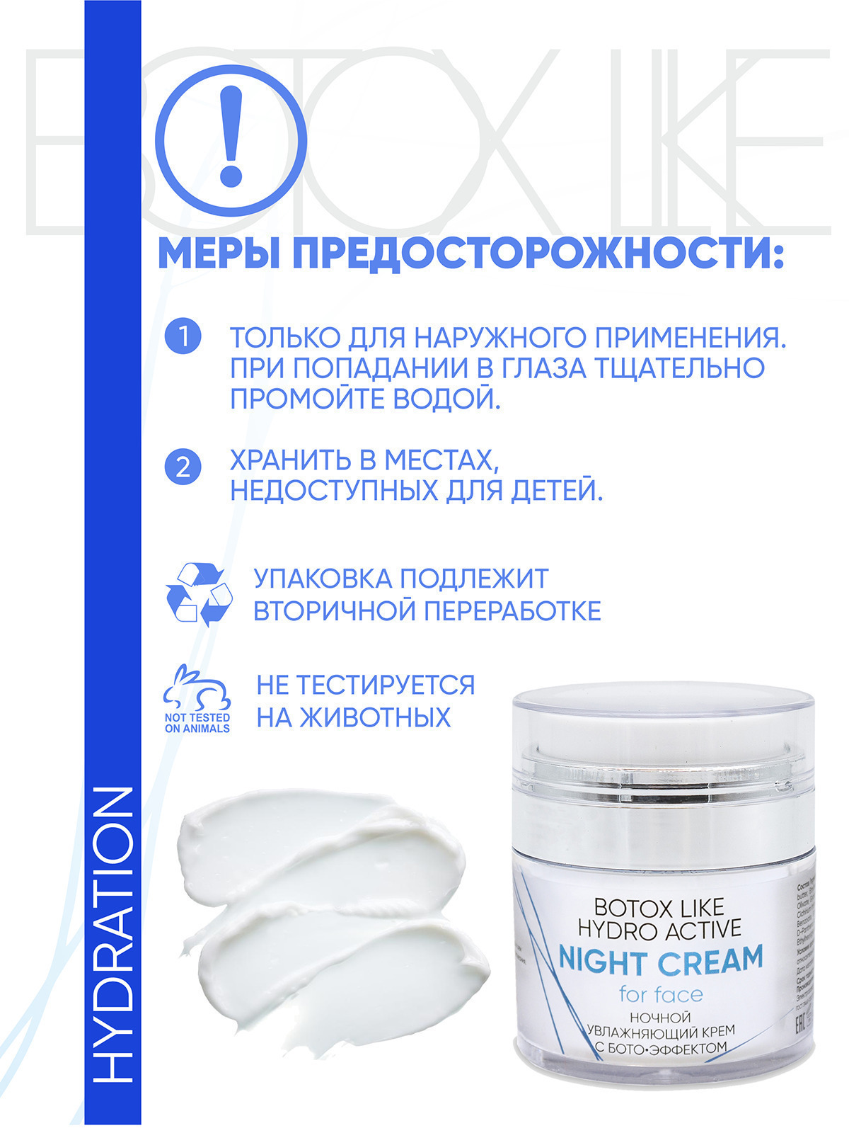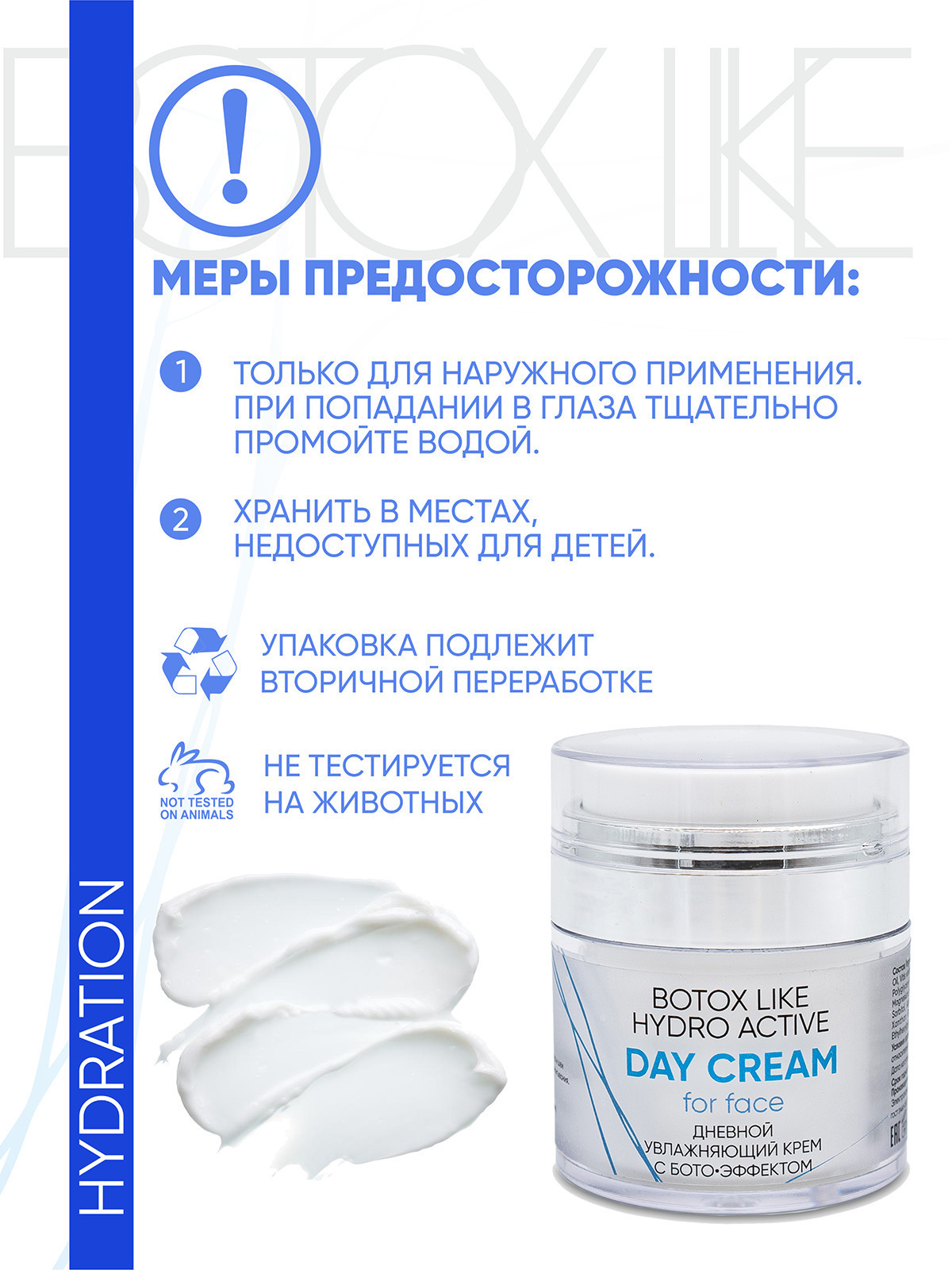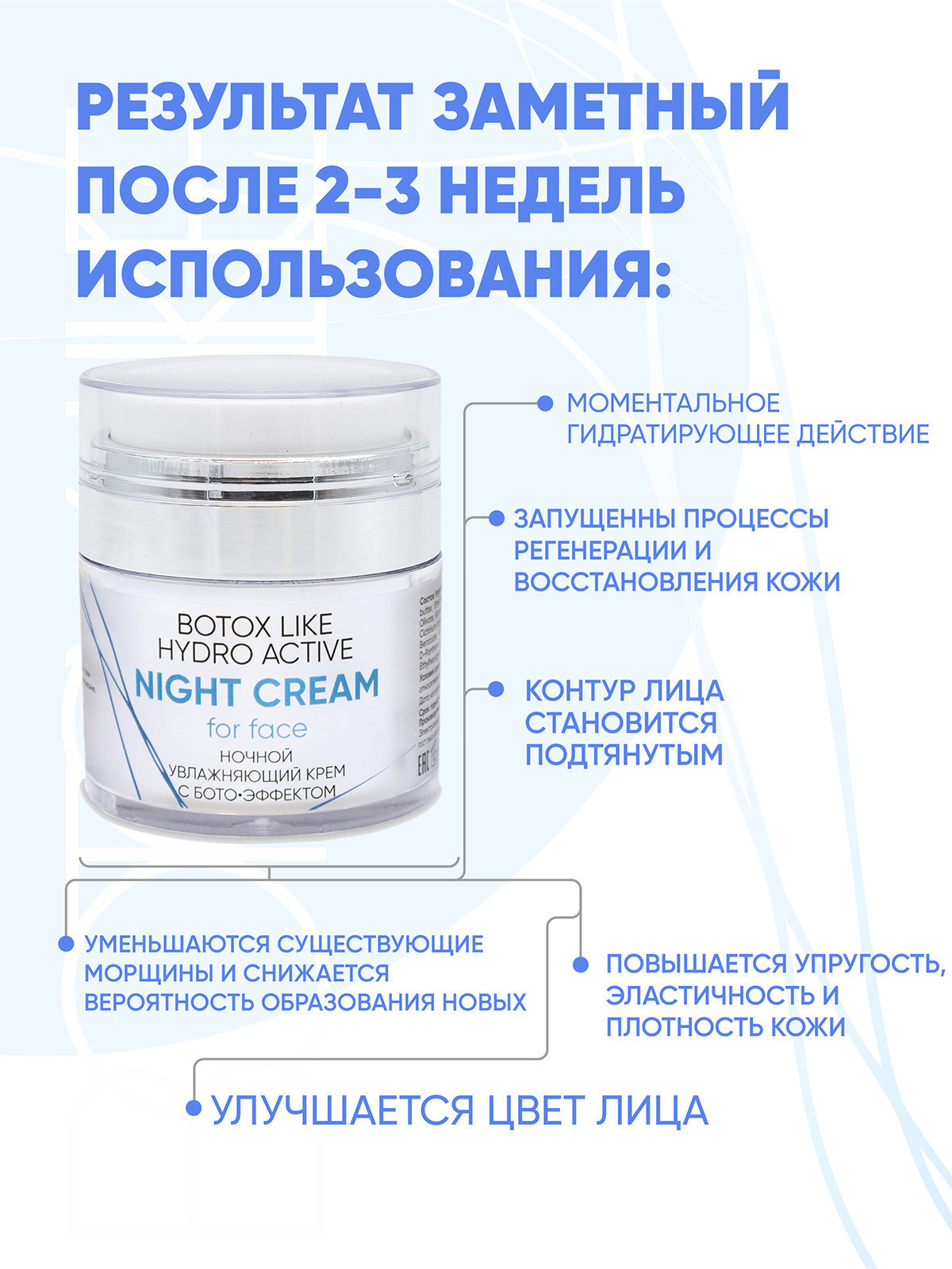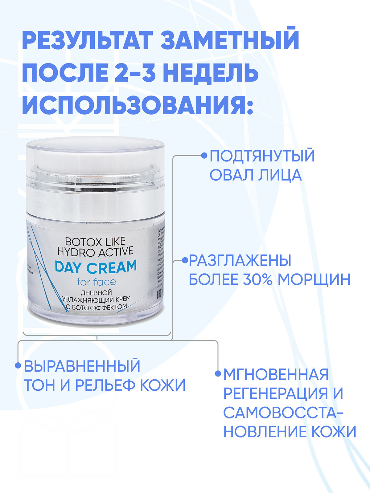 Увлажняющий крем с лифтинг-эффектом для кожи любого типа. Благодаря ботоэффекту актива Cova b trox крем способствует сокращению морщин и препятствует образованию новых. Он повышает упругость, эластичность и плотность кожи, делает контур лица подтянутым, улучшает цвет лица. Что вы получаете в итоге? Ваша кожа выглядит заметно более молодой, «отдохнувшей» и сияющей.