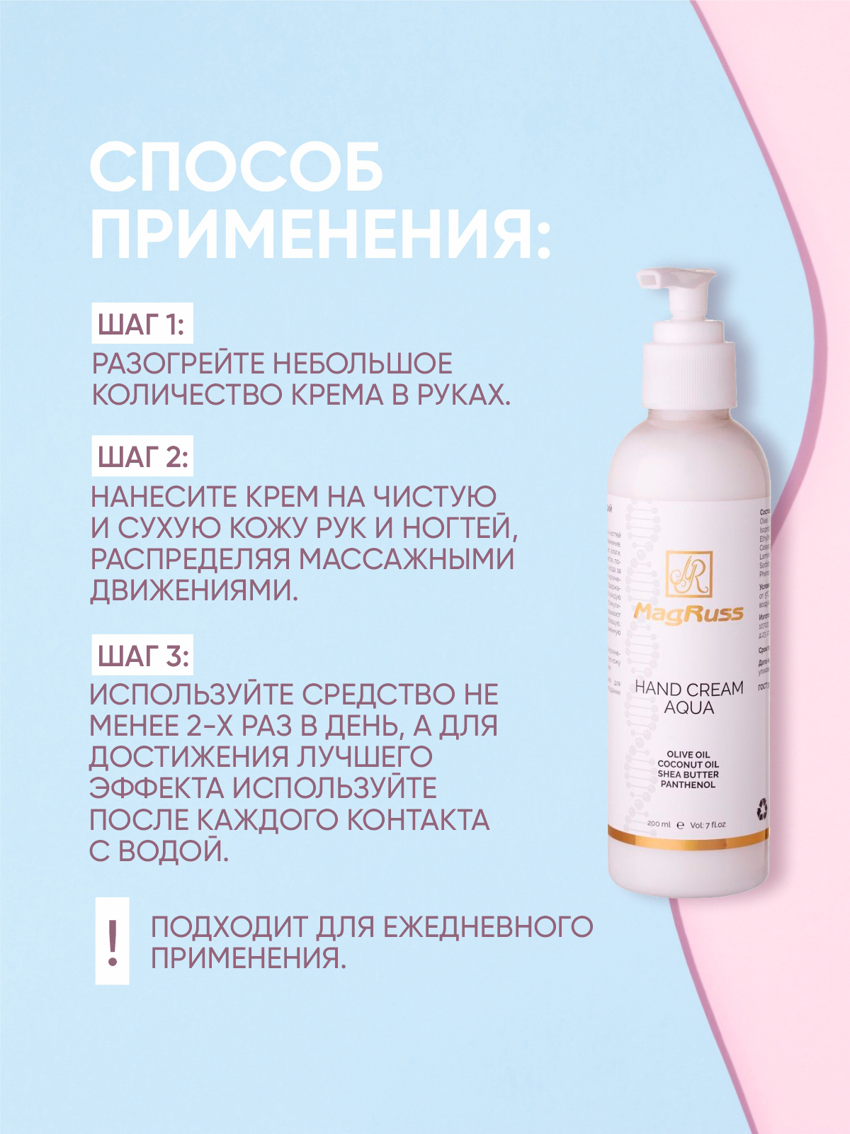 необходимое количество крема нанесите на чистую, сухую кожу рук, массируя до полного впитывания.