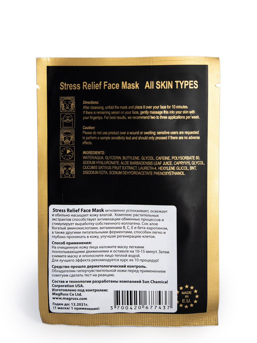 Маска для лица с экстрактом алоэ Stress Relief интенсивно увлажняет и смягчает кожу, снимает покраснения, улучшает защитные свойства эпидермиса, удерживает влагу. Содержащийся в алоэ лигнин способствует проникновению ферментов и влаги в глубокие слои дермы, стимулирует обменные процессы и усиливает обновление клеток кожи.
