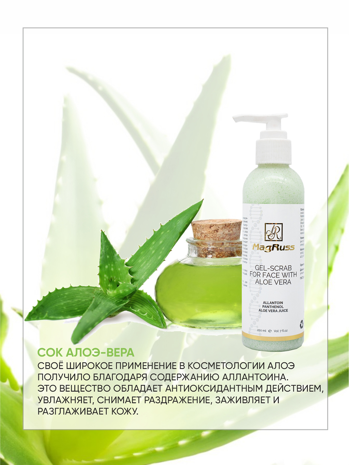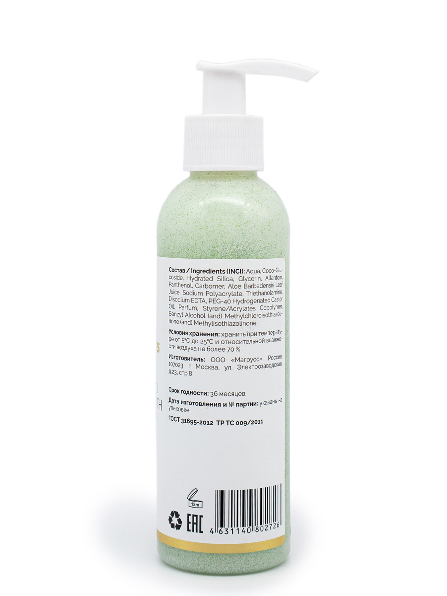 Средство стимулирует процессы клеточного обновления. Мельчайшие гранулы отлично отшелушивают омертвевшие клетки, позволяя коже быстрее обновляться. Сок алоэ вера ускоряет регенерацию клеток и образует защитный барьер от внешних раздражителей, прекрасно проникает в кожу, глубоко увлажняет и предотвращает ее обезвоживание. Аллантоин быстро сужает расширенные поры и эффективно предупреждает образование комедонов. Пантенол делает коллагеновые волокна более плотными и крепкими, улучшая метаболизм в клетках.