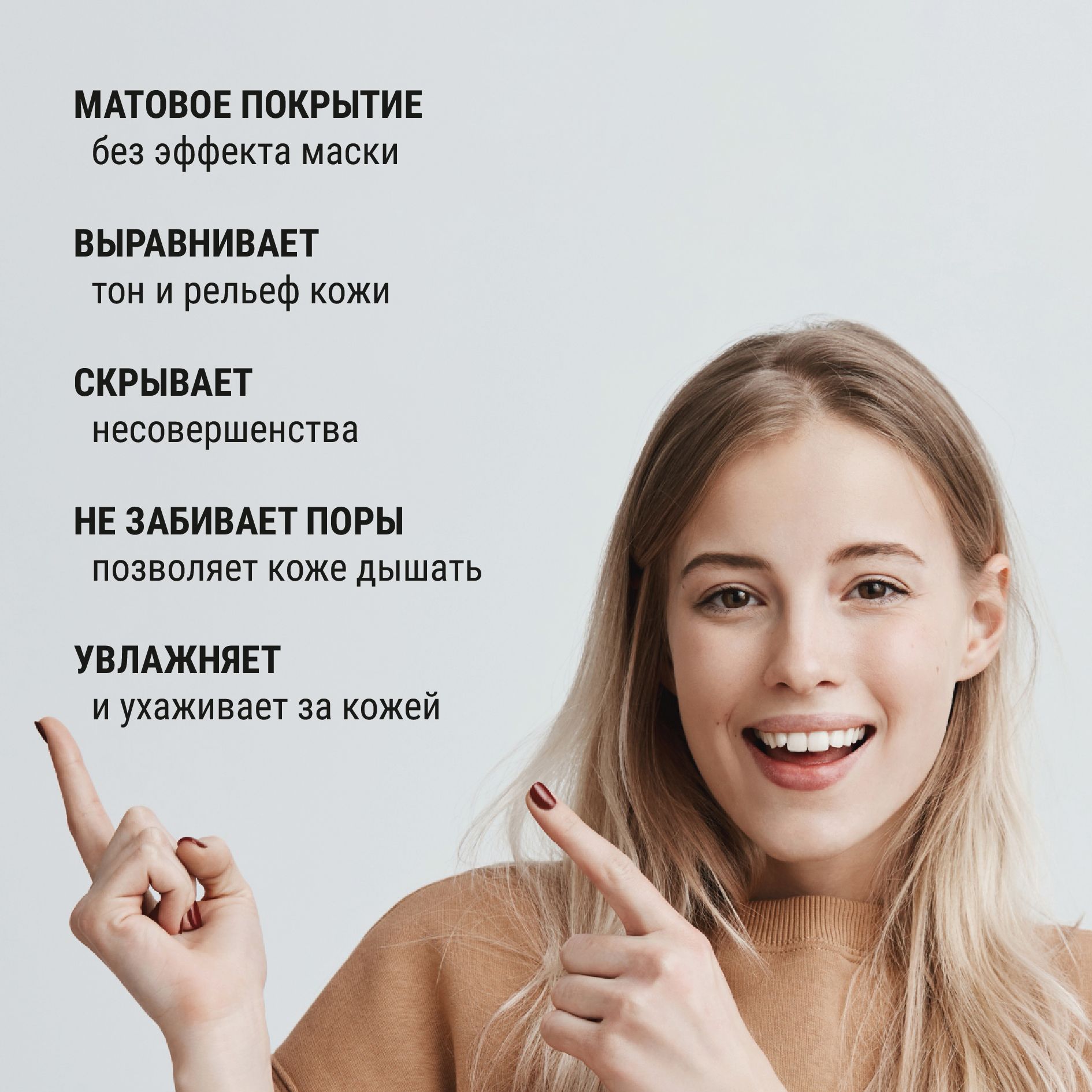 Наш матирующий тональный крем для лица - это идеальный выбор для женщин всех возрастов и типов кожи, начиная с проблемной и жирной кожи, заканчивая сухой, нормальной и комбинированной кожей. Средство обеспечивает идеальный финиш и сияние, который вы ищете.
